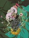 Fruits & Web, 2025. 8" x 10." Mixed media on vintage wallpaper. Please email jennybrownart@gmail.com for purchase inquiries