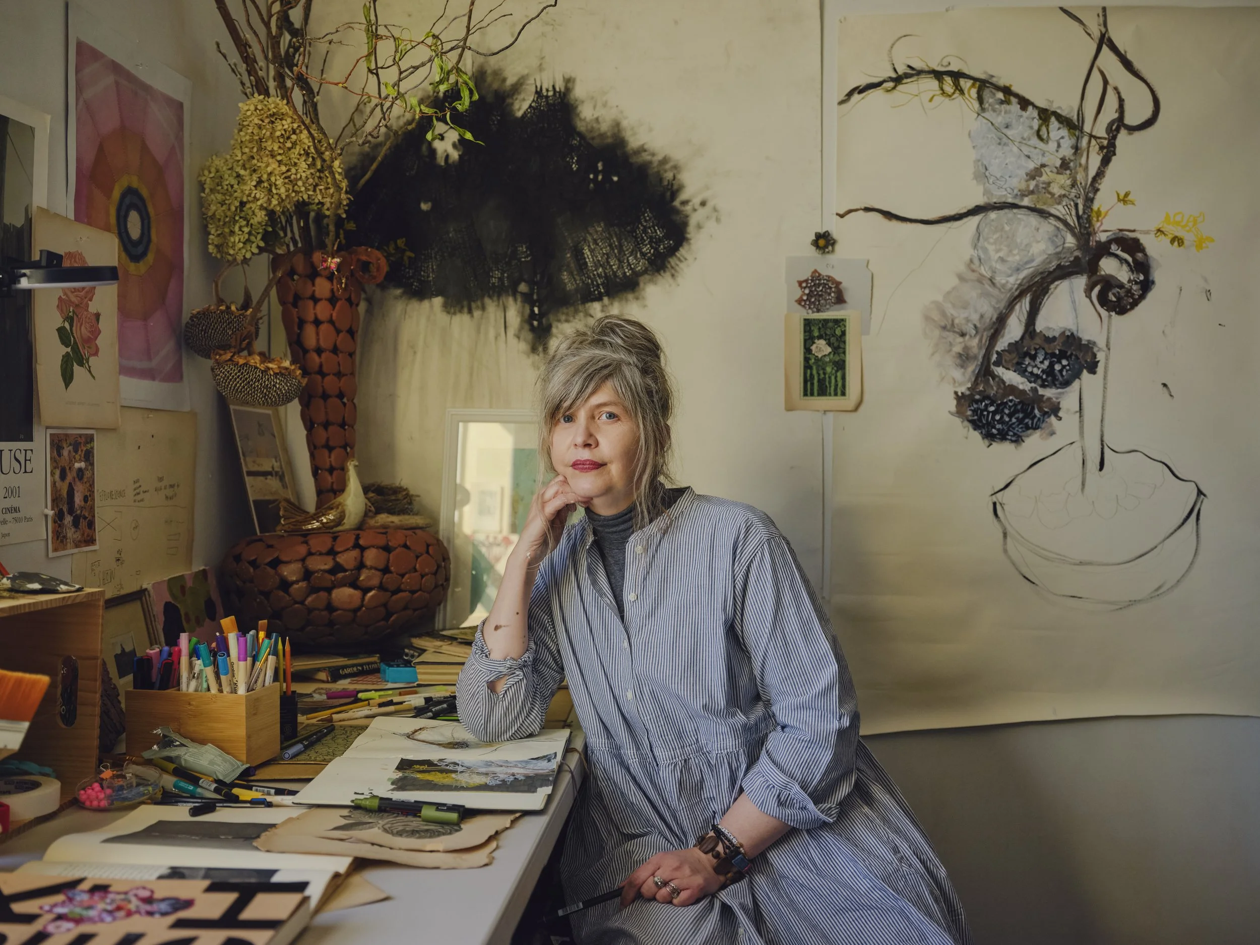 I am a 1996 graduate of Bennington College and received my MFA in 2005 from The School of Visual Arts, where I focused on the study of painting, drawing, and collage. I moved to Rhode Island in 2008, and currently work out of an antique and vintage paper filled studio in Providence’s Olneyville neighborhood. In 2025 I had the good fortune to show my work with the Dryden Gallery in Providence, RI, The Affordable Art Fair Boston (represented by PxP Contemporary), and lead classes, workshops, & artist talks at Squam Art Workshops (Holderness, New Hampshire), Photo Trouvé Magazine (online), and Erase Studio & Gallery (Providence, RI). In early 2026, my studio will be featured in Where Women Create magazine, alongside an essay I wrote about being a “late bloomer” in the art world.